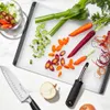 両面使える滑りにくいまな板 両端についた滑り止めで、作業中も安定感があり、立てて乾かすときも滑りにくい仕様です。 フチ部分の溝は、トマトや果物などの水分を受け止めて周りを汚しません。たまった水分はコーナーからすっと捨てられて便利です。溝のない面はフラットなので、切った食材をボウルやお鍋に移すのに便利です。 フチが斜めにカットされているので、片手でも持ち上げやすく快適です。軽量なので扱いやすく毎日のお料理に活躍します。 場所や用途に応じてお選びいただける全3サイズ展開。 漂白剤、食器洗い乾燥機がご使用いただけます。