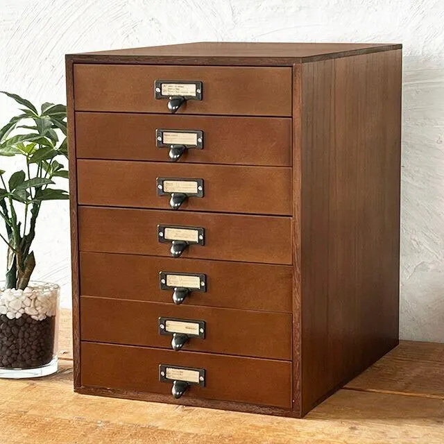 北海道 旭川市の自社工場で製作しています A4サイズのクリアファイルが入るアンティークな風合いの書類ケース。 アンティーク風の、ラベル入れつき取っ手金具が恰好良い。男性にも人気です。 置いて恰好よく、使って便利。 オシャレな空間作りに最適です。 ■商品サイズ 本体外寸   約 横幅270×奥行355×高さ370mm 引き出し内寸 約 横幅232×奥行318×高さ37mm (板の厚みなどで、多少の誤差が出る場合があります) ■材質 桐材、合板を使用。 木目、色合いなどが1つ1つ違います。