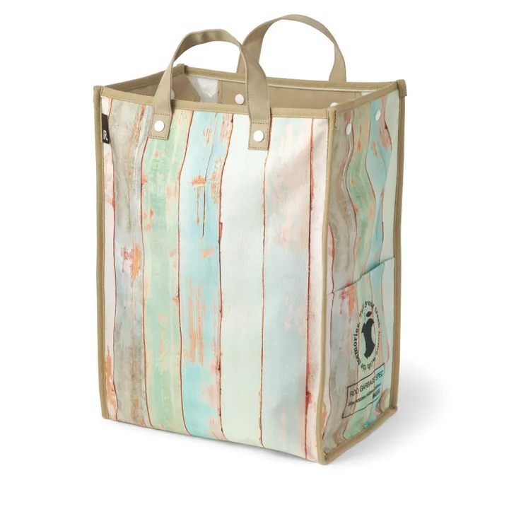 ルートート rootote /ルー・ガービッジ 30L 屋内外で使えるゴミ箱にもなるトートバッグ「ルー・ガービッジ」 目的地ではごみ袋をセットしてゴミ箱として、帰りはゴミ袋を取り出して他の荷物をいれて、持ち帰ることもできる優れもの。 内側のドットボタンでごみ袋を固定します。 付属のプレートを取り付けることで開口し、使いやすくなります。 サイドには、替えのゴミ袋を入れておけるポケット付き。 ダストボックスに早変わり。 ゴミの持ち帰りもゴミ出しもスマートに行えます。 アウトドアの簡易ゴミ箱のほか、お部屋のダストボックスや車の荷物の整理ボックスとしても! エコバッグとしても重宝します。 もちろん収納インテリアとしてお部屋においても楽しめます。 使わないときは、たたんで隙間に収納できます。 デイリー使いだから、いつでも清潔に。 手洗い可能で、衛生的に安心してご利用いただけます。