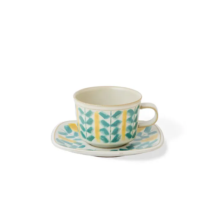 絵柄は『街中にある自然』をイメージ。 一点一点原画からおこし、半永久的に使用できるよう釉薬の下に絵の具を沈み込める技法で彩色されています。 スウェーデンではオブジェや食器を飾っておいたり、眺めていたりすることも“使う”と表現するそうです。 日本にはあまりなじみのないことかもしれませんが、何気ない暮らしを彩り華やいだ気持ちにさせてくれる食器です。 なで角のソーサーと、シンプルなカップの組み合わせで、図案が引き立つように設計しました。 緑の広がりが感じられるデザインです。 Fajans(ファイアンス) Fajansシリーズは、ヨーロッパで発祥した「ファイアンス焼き」から影響を受け作られたシリーズです。 スウェーデンでも多くのデザイナーが魅了され製作した事でも有名な「ファイアンス焼」は、 繊細な淡黄色の土の上に錫釉をかけた陶磁器を指します。 本来は1100℃程の低火力で焼かれていることから、脆く普段使いには適さない食器です。 ポトペリーのFajansシリーズは10年かけて土と釉薬の研究を重ねて製作し、1250℃の高温焼成をすることで 器の耐久性を向上させ、「ファイアンス焼」の柔らかで温かみのある質感を持ちながら 現代生活に欠かせない電子レンジや食器洗浄乾燥機を使用できる素材に仕上げました。
