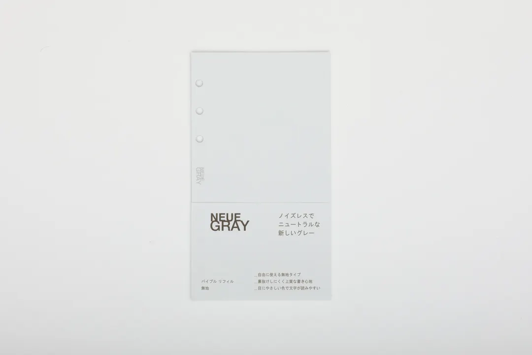 バイブルサイズのシステム手帳用のレフィル。裏抜けしにくく筆記性の高い用紙を採用し、ストレスのない書き心地です。ペンの色味を邪魔しない薄いグレーは紙自体の白色度を抑えているので、目が疲れにくいのも特徴です。 自由な使いかたが出来る無地タイプ。30枚入