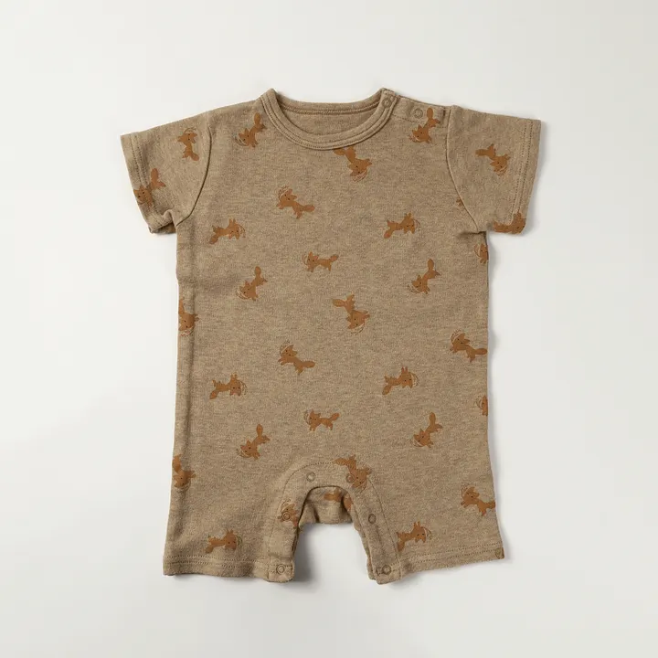 半袖プリントロンパース (キツネ柄)ブラウン/ 18m,80cm