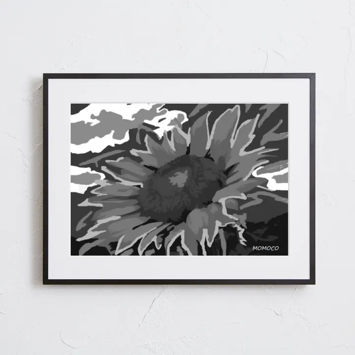 アーティスト -PROFILE- MOMOCO(モモコ) 「色」をこよなく愛する画家、ライブペインター。 躍動感あるアートにも関わらず、服を一切汚さず短時間で音楽と同時に描き上げる。そのパフォーマンスと巨大アートは観る人を魅了する。 前職は某有名ファッションブランドにてデザイナーとして活躍。その経験の中で養われた「色とデザイン」の絶妙なバランスを活かしつつ、トレンドを取り入れ進化し続けるアートを目指す!国内外問わず、精力的にアートと向き合い発信を続けている。 【作品について】 夏のシンボルでもある向日葵をあえて、モノトーンに モダンなインテリアや白黒好きの部屋にも相性の良い作品です 作品名:himawari Ⅴ 手法:デジタル、イラスト ペーパー:高品質半光沢紙 マットカラー:白 マット*:DXホワイト芯 100%バージンパルプ/PH7・中性紙(2mm厚) ※全てのアートにマットがつきます フレームカラー:黒、白、無垢(3種類から選択) ※マット付のため通常とはフレームサイズが異なる規格となります。 【マット*とは?】 アートポスターの周りに挟んだ厚紙の事。 マットを使わない時に比べ余白により広がりが生まれ、作品の新たな一面を引き出せ作品の見栄えがグッと良くなります。また、額縁のガラス面と作品が直接触れたままにしておくと、くっついて作品を傷つけることがあります。マットを使用することでガラスと作品の間に空間ができ、作品を保護することができます。ブランドコンセプトにより全てのアートにマットがつきます。 ー ファッションのようにアートを ー 私達が掲げるコンセプトです! 毎日着替えるファッションの様に、アートも気軽に飾り変えて欲しい... 一旦飾り終えたアートにも光を当ててほしい... ポスター単体、またはリピートで中身だけのポスターを購入された方に"専用のハンガー"をセットでお届け。 「今までに無い!新しいアートの飾り方を提案」 飾る事がなくなった前のアートをハンガーにかけて洋服と一緒にかけてもらう。 その日の気分や、モチベーションですぐに取り換えられる様に。 もちろん、魅せる収納としても今までにないおすすめの飾り方です。