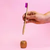 歯科医の指導、監督のもと、製造された歯ブラシ。持ち手部分には生分解性100%の竹材が使用されているので、土に埋めても分解され、燃やしても有害となる毒素が放出されません。