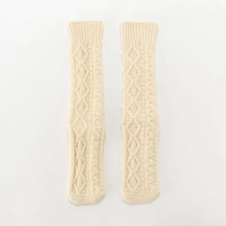 南フランスで育ったメリノ種の羊から取れるウール、フレンチメリノを使用したアランニットのような靴下です。他の国や地域のウールに比べてフカフカでモチモチとした弾力性が特徴です。立体的なケーブル柄やプリプリッとした質感は素材のおかげで表現できる独特な雰囲気です。 98%WOOL,5%NYLON,2%POLYURETHANE 日本製