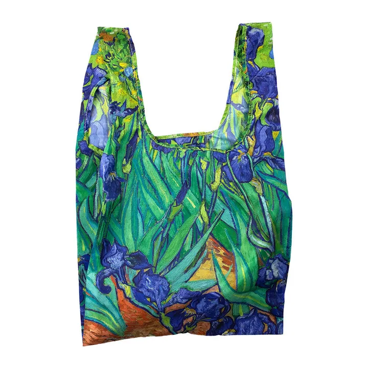 1889年に描かれたゴッホの代表作の1つである「Irises(アイリス)」が、全面にプリントされたリッチなデザインです。 ミュージアムコレクション 美しさと時代を超越した価値を考慮して慎重にセレクトされた作品が、100%ペットボトル再生生地に鮮やかにプリントされています。 風景画から浮世絵までテイストの違う9柄から、自分にぴったりの一枚を見つけてください。 ミディアム 100%ペットボトルを再生した生地を使用したエコバッグ。ミディアムサイズは、約6本のペットボトルからできています。 肩に掛けて持つことができ、どんなシーンにも活躍する大容量サイズ。