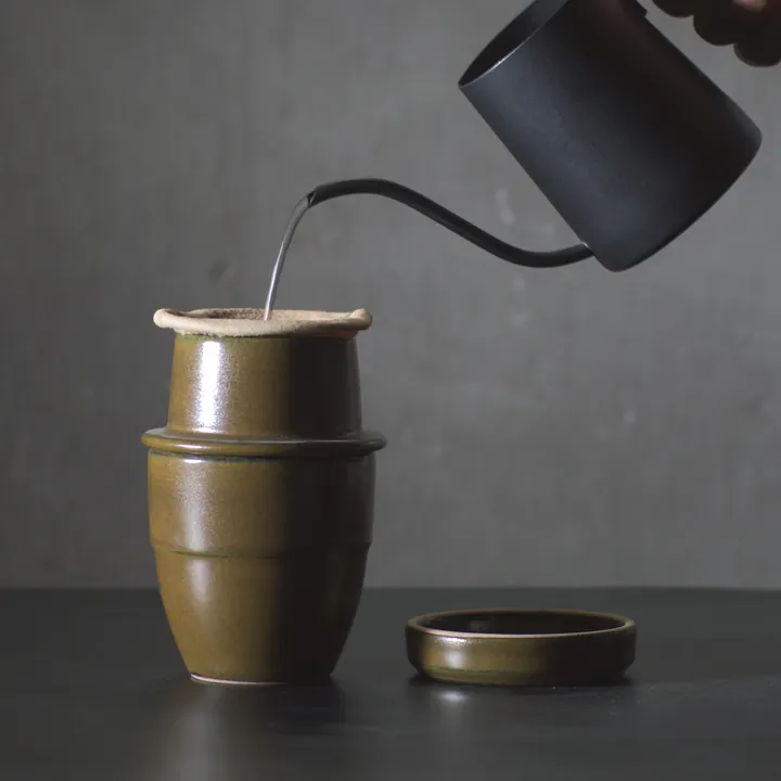 日々の暮らしの中で ”自分だけの時間" はありますか? 心を落ち着かせる大切な時間。 soupir [スピール] は そんな時に使ってほしいドリップセットです。 少しだけ、本当の自分に戻ろう。 コーヒーの香りに包まれながら。 soupir = 休符・ため息 ---- 美味しさへのこだわり ---- ●美味しいから、楽しくなる● ネルドリップの魅力はなんと言ってもその味わい。 コーヒーオイルたっぷり、こってりしながらもまろやか。 とろりとした上品な舌触りはネルドリップでしか味わえません。 ●3つの味のコーヒーフィルター● 喫茶店を選ぶようにフィルターを選ぶ、古くて新しい珈琲体験。 ひとつの豆で3つの味わいが楽しめます。 半世紀以上喫茶のプロを支え続ける”マルタ”のネルフィルターで、ストーリーも同時にお楽しみください。 ●ネルドリップは難しくない● 分量固定 + 強い蒸らし構造 + 陶器の保温性。 なんとなく難しいイメージがあるネルドリップ。 スピールはドリップの楽しさは大切にしながらも、安定してドリップできる工夫を散りばめています。 ---- 使いやすさへのこだわり ---- ●コンパクト&シンプル● カップ・ドリッパー・受け皿の3パーツはカップ一個分に収納出来ます。 使う時はドリッパーを反転して、ドリップモードに切り替えるだけ。 シンプルな造形は洗いやすさも考慮しています。 ●被せる。ネルフィルターの新しいカタチ● ステンレスワイヤーを内蔵した専用のネルフィルター。 ペーパードリップに近いワークフローで、違和感のないドリップスタイルを実現しました。 ●冷凍保管で、ネルフィルターの管理イメージを刷新● 既にネルフィルターを使ったことのある方には、管理が難しいと感じた方も多いはず。 スピールのネルフィルターは失敗知らずの冷凍保管が可能。 使う時も流水解凍するのみです。 ---- 野点珈琲のすゝめ ---- ●持ち運べるパッケージ● パッケージは外側を紙管、内側がスポンジの二重構造に、さらに陶器はシリコーンバンドで固定。 陶器のスピールを安心して持ち運び、好きな場所で、好きな珈琲を淹れる贅沢を実現しました。 ●クッカーに収納する新しい発想● パッケージ内のスポンジは250サイズのOD缶と同じ直径に設計。 OD缶が収納できるアウトドアクッカーにピタリと収まり、スピールの収納ケースに早変わりします。 肌寒いキャンプのお供に、ネルドリップコーヒーはいかがでしょうか? ---- メッセージ ---- この度はご覧いただきありがとうございます。スピール開発者のsuzugamaの佐藤と申します。 ネルドリッパー・スピールの開発は名古屋の下町・大須にあります「丸太衣料株式会社(以降マルタ)」さんから相談していただいたことから始まります。マルタさんはとても長くネルフィルターを制作していまして、喫茶店のマスターの特注品から大手清涼飲料水メーカーの工場用まで幅広く制作しておられるネルフィルター製造の老舗のひとつです。ただ昨今はネルドリップという淹れ方自体も下火になってきており、また新しい抽出法に押されていて何か魅力を伝えられるものが作りたいとのことでした。 私自身コーヒーはほとんど毎日ハンドドリップで飲んでいましたが、ネルドリップは未経験。いただいたネルフィルターで淹れてみると、美味しさももちろんですが粉にお湯が通っていく感覚がすごくわかりやすくて「ドリップってこうやってするのか」と今までなんとなく淹れていただけだったのが、なんとなく腑に落ちるというか新しい世界が拓けた感覚がありました。ただ準備と片付けに難点があるのも事実で、楽しいけど子育てに仕事にてんやわんやの毎日の中で続かないかも。。。というのが正直な感想でした。 なのでスピールは「ズボラな私でもネルドリップを気軽に楽しめるネルドリッパー」を目指して形にしていきました。本当に手探りというか、未知のネルドリップの世界をとにかくグルグル歩きまわりながら何かヒントはないか、サンプルにしてみては皆で首を傾げつつ(笑)徐々に今の形になっていきました。おまけにsuzugamaとしては初めての半量産品。地元・土岐市の陶器に関わる皆さん、ネルフィルター製造に関わる愛知の職人さんなど、たくさんの方々にご協力いただいてなんとかクラウドファンディングまでこぎつけました。 世の中には本当に幅広いコーヒーの世界が広がっていてコンビニでも自動販売機でもどこでも買えますし、便利な器具も豪華な器具も、とんでもなく高価な豆まで楽しみ方は人それぞれです。でもスピールはどこにも似せたくありませんでした。暮らしの中でのバランス、実用性だけじゃなく趣向性だけでもなく、取り入れやすいけど生活に張りを与えるアクセントになる。ハンドドリップが本当に楽しくなるネルドリップの良さは表現しながらも、バランスの取れた道具に出来ないか。スピールはそんな模索の結果です。 「たまにはちょっといい豆も使ってみようかな」そんな少しいい気持ちで過ごせる時間