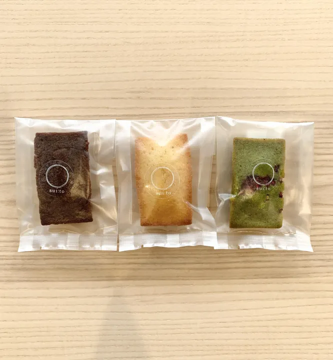 sui:toの焼き菓子は素材本来の風味を大切に、保存料や着色料などを使用しておりません。出来るだけ自然な素材を厳選し、自社工房で一つ一つ丁寧にお作りしています。