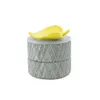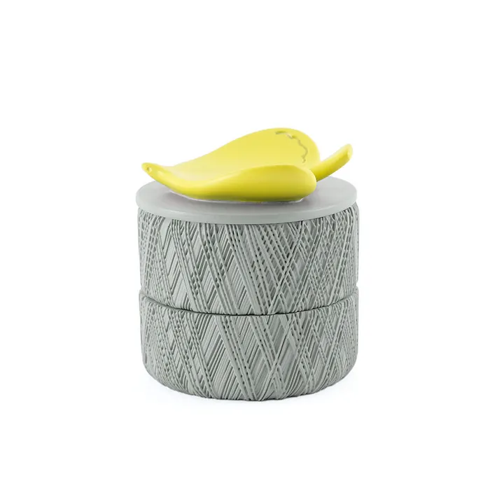 レジン素材で作られたフタに鳥のモチーフをあしらったキャニスター。 蓋の上には立体的な鳥モチーフが施され、指輪やピアスなど、いつも身につけるアクセサリーの置き場所に。 本体の側面には糸巻きを思わせる凹凸模様が施されており、光を受けることで柔らかな陰影が生まれる表情豊かなデザインが特徴です。 アクセサリーだけでなくデスクまわりの細かなものを整理したり、見せる収納として飾ったりと、インテリアとしても楽しめるアイテムです。 *デザインボックス入り