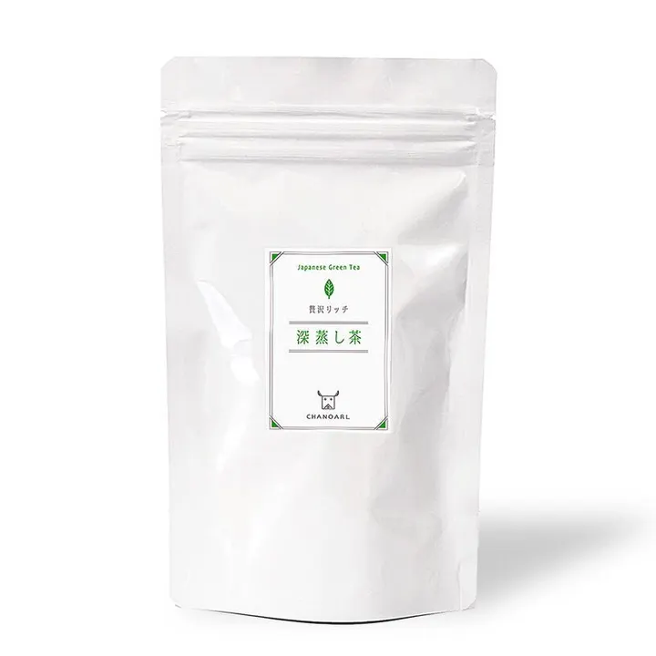 静岡産の良質な一番茶のみを使用したリーフグレードの特上深蒸し茶を贅沢にティーバッグにしました。 通常の2倍の時間をかけて茶葉が細かくなるまでじっくり蒸し上げ、芳醇な香りとコクのある旨味を引き出しました。通常の煎茶よりも渋みが少なくまろやかで、食物繊維、βカロテン、ビタミンE、ミネラルなどの栄養成分も豊富です。 お気に入りのカップにティーバッグを1つ入れてお湯を注ぐだけ。 ティーバッグの形状は、三角テトラ型メッシュタイプ。広い空間の中で茶葉が大きく広がり、急須で淹れたような香りと美味しさがしっかり抽出されます。ティーバッグの素材は、環境とカラダにやさしい植物由来の素材を使用しています。 和食や魚料理はもちろん煎餅からスイーツまで幅広くペアリングが楽しめます。冬はホットで夏は水出しでお楽しみいただけます。 白基調のかわいいパッケージは保存に便利なチャック付き。キッチンやテーブルにさりげなく置いておくだけでオシャレ感UP。ご自身へのご褒美や大切な方へのギフトにも喜ばれます。