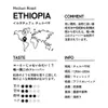 紅茶のような芳醇な香りと熟した桃の果実感 information 地域:ゲディオ県 ゲデブエリア チェルベサ村 標高:1950~2200m 精製:WASHED 品種:在来種 認証:栽培期間中 農薬、化学肥料不使用 taste 甘味:●●● 苦味:●● 酸味:●●●● コク:●● 焙煎度目安 浅煎り history エチオピアの中でも1,2の人気を誇るチェルベサ。人気の秘訣は北欧を中心に世界的にも注目を集めるスパイシーなテロワール。水洗加工にすることで、その特徴的なフレーバーがくっきりと表れ、楽しめるようになりました。また、フレーバーだけでなく、SNAP社の技師と農家さんの協働による優れた加工技術によって、透き通るような酸やクリーンカップが感じられるようになり、長く余韻を楽しめるコーヒーとなりました。 この村では農地は0.5~1ha程度の規模の栽培面積を持つ零細農家さんが多く、各世帯の庭先で栽培を行う、いわゆるガーデンコーヒーと呼ばれる栽培方法をとっています。農家さんはコーヒーの他に、とうもろこし、唐辛子、ニセバナナ、ジャガイモ等を栽培しており、シェードツリーにはワンザと呼ばれる大きな葉をつける木や、モクマオウ属系の木を利用しています。 標高1,950mを超えるチェルベサの水洗工場は、朝や夜は長袖が必要で、朝は霧が立ち込めるほど気温が下がり、日中も25度程度しか上がりません。冷涼な気候下では、チェリーは太陽の光を十分に浴びながらアフリカンベッドでゆっくりと乾燥が行われ、糖度を内部に凝縮させていきます。こうして丁寧に作られたコーヒーは桃やアプリコット、そしてレーズンを思わせる甘さと、突き抜けるような甘いスパイスのニュアンスが特徴的です。この唯一無二のフレーバーは、北欧を中心に世界中で人気を集め、チェルベサ村のコーヒーを求める声は年々大きなものになっています。