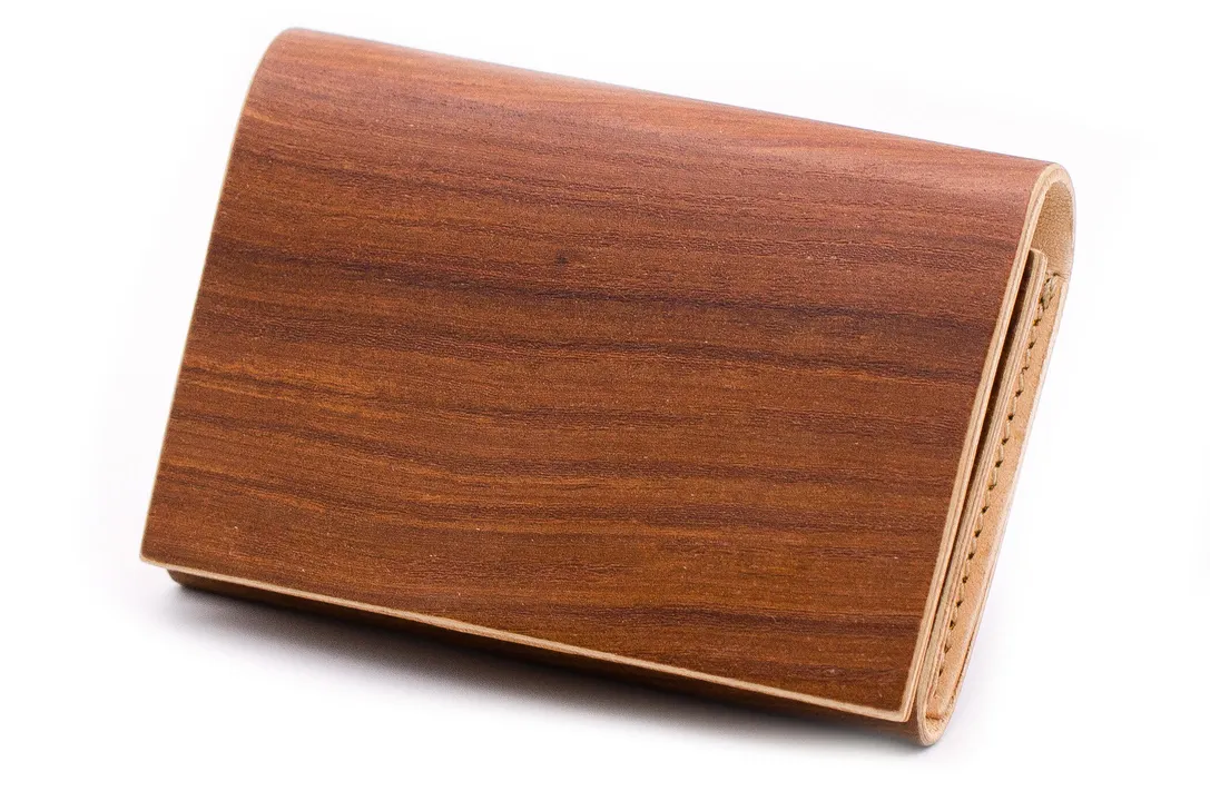 木材と本革の融合で生まれた 財布と名刺入れのブランド。 木材の強度で型崩れを防止し革製品の弱点を補っています。