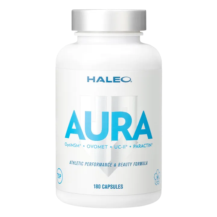 【厳選素材】Ⅰ型+Ⅱ型 コラーゲン ダブル配合 x MSM x センシンレン !弾力とスムーズさ・イキイキとした生活に! AURAは、違和感を感じることなくスムーズな生活を送りたい一般の方から、ハードなトレーニングを継続したいトップアスリートをサポートするコラーゲン&MSM含有サプリメント。たんぱく質を構成するアミノ酸の中でグリシンとプロリンが関節組織に最も多く存在しますが、これらのアミノ酸を豊富に含むのがコラーゲンです。AURAはⅠ型、Ⅱ型コラーゲンの両方を含有し、相乗的に働くMSMやセンシンレンエキスを強化配合しています。体内に最も多いと言われるⅠ型コラーゲンは、骨や皮膚の強さを生み出し、皮膚のコラーゲンの90%を占めると言われています。AURAは、ジョイント組織の健康維持やお肌の健康に適切な栄養補給を行うことで充実したアクティブライフをサポートします。 【特許成分(スペイン特許)OVOMET™】 Ⅰ型コラーゲンは特許成分(スペイン特許)OVOMET™で、これは消化されるとアミノ酸に分解され、ジョイント組織や皮膚の健康維持に利用されます。OVOMET™は卵殻膜エキスのⅠ型コラーゲンと、コンドロイチン硫酸、グルコサミン、ヒアルロン酸などのグリコサミノグリカン(GAGs)で構成されており、繋がり(ジョイント)組織や肌の水分を維持するのに役立ちます。GAGsはジョイントの不自由な感覚を緩和することが知られており、特にMSMと併用すると相性が良いと言われています。 【特許成分UC-Ⅱ®】 Ⅱ型コラーゲンには特許成分UC-Ⅱ®を使用しています。UC-Ⅱ®は健康なコラーゲン量を維持するのに必要な栄養素を補給することでOVOMET™と相乗的な相性の良さがあると言われています。 【OptiMSM®:生物利用可能なミネラル硫黄源】 硫黄はニンニク、玉ねぎ、ブロッコリ—、カリフラワー、キャベツなどの食品にも含まれていますが、研究によるとMSMはOVOMETに含まれるコンドロイチンとグルコサミンの2つの成分との相乗作用により、ジョイント組織の自由な動きを制限する要因を軽減することが分かっています。また硫黄は皮膚の構造骨組をサポートし、毛髪と爪の構成成分であるケラチンの構成要素であるコラーゲンの主要成分です。 【ParActin®:センシンレンエキス末】 センシンレンは、アンドログラフィス・パニキュラータ(学名)とも呼ばれ、何百年にもわたり中国やアーユルヴェーダなどの伝統的なアジアの健康維持方法で使用されてきました。ParActin®にはジョイントの健康サポートだけでなくカラダのバリア機能サポートのエビデンスもあり、最近はさらに人気のサプリメントになっています。またParActin®はOptiMSM®との相乗作用で健康的なライフスタイルを維持するよう働きかけます。 ■■■こんな方にオススメ!■■■ ✔ 繋がり(ジョイント)箇所の健康を維持したい方 ✔ 何らかの不自由な感覚を感じるため動きの大きい運動や可動域を増やすトレーニングを制限している方 ✔ お肌をはじめとする美容に気を付けている方 ✔ 弾力あるアクティブボディでいたい方