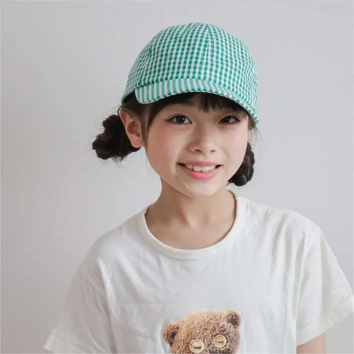 キッズ 女の子 キャップ チェック柄 ブラック イエロー グリーン ピンク パープル 春 夏 秋 冬 SNK001 グリーン