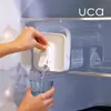 【冷蔵庫に入れたまま注げるジャグ MEGA TANK】 まるでウォーターサーバーのように、いつでも楽に冷たい飲料が飲めるジャグ『冷蔵庫に入れたまま注げるジャグ MEGA TANK』。冷蔵庫から重たいジャグを出し入れしなくても、冷蔵庫に入れたままワンプッシュで飲料を注げるので楽々です。ハンドル付きなのでアウトドアシーンなどでの持ち運びにも便利。プッシュボタンを押しながらロックすれば、注ぎ口が開いた状態で固定されるのでそのまま飲料を注げて、ロックを解除するとワンプッシュで簡単に飲料を注げます。 【便利なロック機能で使いやすさ抜群】 プッシュボタンを押しながらロックすると、プッシュボタンが固定されて押さなくても飲料が出続けます。本体を持って飲料を注ぎたいときに便利。ロックを解除した場合、プッシュボタンを押したときだけ飲料が出ます。プッシュボタンを離すと飲料が止まります。 ※使用しないときはプッシュボタンを押さないでロックすれば、ボタンを押すことが出来なくなり、飲料が出てきません。 【横持ちしやすい凹み設計】 本体に施された凹みにより、横持ちしやすい設計です。さらに、フタの内側にはフィルターが付いており、氷やティーバッグが飲料と一緒に出るのを防ぎます。 【アウトドアにも最適】 ハンドル付きでキャンプやBBQなどのアウトドアシーンにも便利です。大容量の3.5Lなので、家族や友人たちと集まる場でも活躍します。 【製品情報】 商品名: 冷蔵庫に入れたまま注げるジャグ MEGA TANK サイズ: [ハンドル使用時] W140×D130×H342mm [ハンドル未使用時] W140×D153×H300mm 重量: 355g [本体] AS樹脂 [フタ・ハンドル] ポリプロピレン [プッシュボタン・ロックスイッチ] ABS樹脂 [パッキン] シリコーンゴム 満水容量: 3.7L 実容量: 3.5L 耐熱温度: 80℃ 耐冷温度: -20℃ 耐荷重: 3.7kg 原産国: 中国