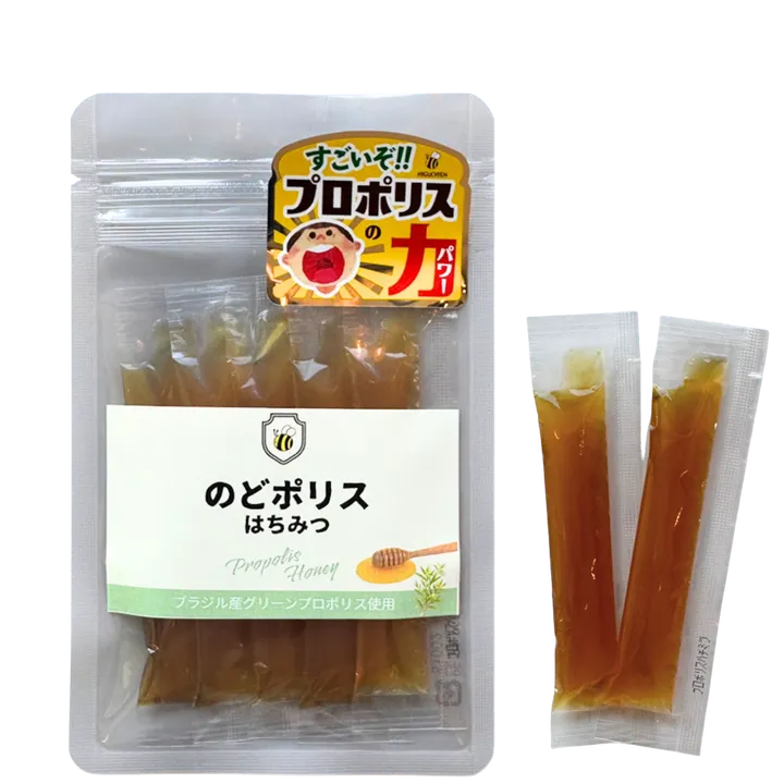 「自然がくれた守るチカラ」 プロポリスとは? 「ミツバチが作る天然の抗菌バリア」 巣の中を守る役割や自然由来の安心感 原料のプロポリスは水や甘味料を加えず、エタノール抽出原料をベースにしたシンプル処方のプロポリスエキスです。 フラボノイド、アルテピリンC、アミノ酸、ビタミン類など有用成分を壊さずに抽出。 国産はちみつ(北海道産あざみ)をベースにプロポリスエキスと混ぜ合わせました。 【こだわりポイント】 1. 原材料はシンプルで安心 余計なものは一切加えず、プロポリス(固形分)と食用アルコールのみ。 甘味料・香料・着色料・保存料・安定剤はすべて無添加。 素材そのもののチカラを引き出す、シンプルさへのこだわりです。 2. 北海道産あざみはちみつを100%使用 希少な 「北海道産あざみはちみつ100%」を贅沢に使用。 まろやかな甘みと濃厚な香りが、プロポリス特有の力強い風味をやさしく包み込みます。 ※国産はちみつが不作時は北海道ぼだいじゅはちみつに変更になっております。 3. 世界が認める「グリーンプロポリス」 プロポリスの名産地 ブラジル・ミナスジェライス州から厳選。 その中でも特に希少で、高品質と世界的に評価される グリーンプロポリスを使用しています。 大自然が育んだ力を、そのままお届けします。 4. 厳格な安全検査 毎日口にするものだからこそ、残留農薬や抗生物質を徹底検査。 厳しい基準をクリアした原材料のみを使用し、安心・安全を第一に考えています。 5. 成分を守る徹底した品質管理 熱や湿気に弱く、劣化しやすいプロポリス。 原料のプロポリスの輸送はすべて 空輸、到着後はただちに 冷凍保管。 有効成分を損なわず、お客様のもとへお届けできるよう、徹底した品質管理を実現しています。