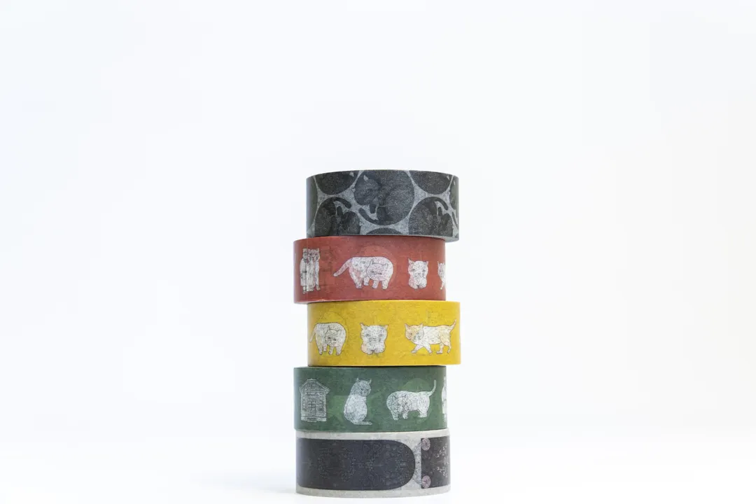 宮沢賢治著「注文の多い料理店」から着想を得た山猫瓶詰研究所のオリジナル「マスキングテープ」。 〈カラー展開〉 *ロゴまるねこ・グレー 山猫瓶詰研究所の丸い看板猫が並ぶマスキングテープ。長く伸ばすと山猫がコロコロと転がっているよう。途中で千切るのがもったいなくなる可愛さです。 *山猫の庭・ベージュ 山猫の庭をイメージしたデザインのマスキングテープ。6種類のシックなデザインが並びます。1種類ずつ千切ってシールのように使っても◎ *やまねこ・赤 山猫瓶詰研究所をぎゅっと詰め込んだマスキングテープ。目を引くな赤色が気分を上げてくれます。手帳やお部屋の飾りつけのアクセントになってくれますよ。 *やまねこ・黄 山猫瓶詰研究所をぎゅっと詰め込んだマスキングテープ。ポップな黄色が気分を上げてくれます。明るい色味ながら馴染んでくれる万能色です。 *やまねこ・緑 山猫瓶詰研究所をぎゅっと詰め込んだマスキングテープ。落ち着きと遊び心を緑色は、ちょうどいいデスクの上のお供になってくれます。 *郵便猫 郵便局員に扮した山猫のマスキングテープ。お仕事をする山猫の姿が愛らしいです。 ※ご覧いただく環境により実物と色味が異なる場合がございます。予めご了承ください。