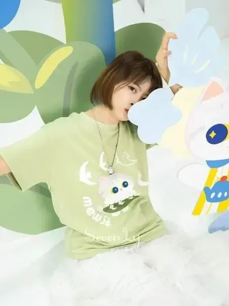 「2025新作」MEWJIオリジナル 猫ちゃん 猫モチーフ プリントTシャツ 半袖 春夏 綿100% SM展開 グリーン M