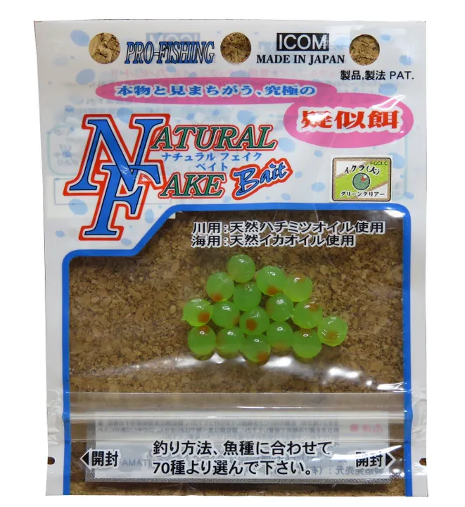 【日本製】ナチュラルフェイクベイト NATURAL FAKE Bait PRO-FISHING ハンドメイドによる精巧なフォルムの疑似餌(ワーム) 川・湖・沼・海用 ナチュラルフェイク 川用 I-LG イクラ (Lサイズ)(入数16) ラージグリーンクリア