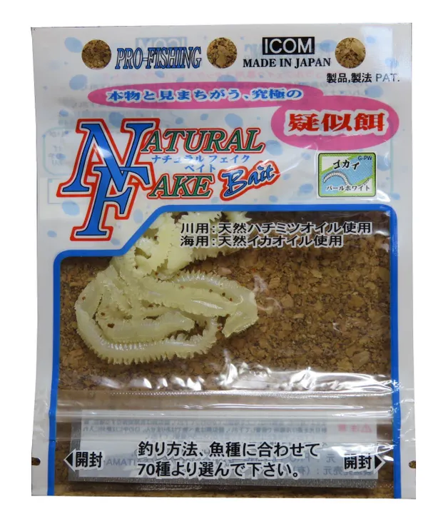 【日本製】ナチュラルフェイクベイト NATURAL FAKE Bait PRO-FISHING ハンドメイドによる精巧なフォルムの疑似餌(ワーム) 川・湖・沼・海用 ナチュラルフェイク 海用 G-PW ゴカイ(入数8) パールホワイト