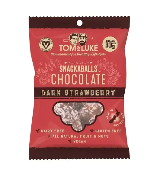 【溶けない!常温流通可能】口当たりしっとり、甘酸っぱい苺と濃厚なカカオの味わい。<ダークストロベリー>の3個入りパック。 🔳<ヴィーガン対応>罪悪感にサヨウナラ!新感覚のギルトフリーチョコレート。 🔳デーツとナッツから作られたチョコレートボール。 🔳グルテンフリー、精製砂糖不使用、乳製品不使用、卵不使用、ヴィーガンでヘルシーなおやつとしてお召し上がりいただけます。 🔳精製砂糖不使用でドライフルーツのデーツ本来の甘さをいかし、食べ応え抜群です。 【トム&ルークとは?】 ニュージーランドで大人気のパーソナルトレーナー「トム」と、客足の絶えないレストランのシェフ「ルーク」が健康と美味しさを形に変えた実力派スイーツです。 【健康と美味しさをカタチに】 甘いものは食べたいけど、砂糖はできれば摂りたくない!そんな願いをドライデーツの甘さを最大限に生かして実現しました。 【まるで本物のチョコレート?!】 カカオも使用しているためチョコレートのような感覚で召し上がれます。 【健康に欠かせないアーモンド】 ビタミンE、食物繊維、ミネラルが豊富に含まれるアーモンドを、ドライデーツと一緒に混ぜて食べやすくしました。 【こんな時にオススメ】 🔳ダイエット中で、砂糖を使ったスイーツを控えている時 🔳トレーニングの栄養補給 🔳小腹が空いた時 🔳朝ごはんに十分な時間が取れない時 🔳コーヒータイムに 🔳ワインのお供に 🔳ハイキングなどお出かけ時に 🔳忙しい時 🔳食べているときに音が気にならないので、オフィスで仕事中にもサクッと食べられる