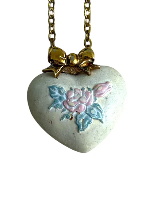 ロサンゼルスで買付した1点物のヴィンテージジュエリー 立体的なハートとゴールドリボンが美しく調和し、ヴィンテージ感溢れるデザインを引き立てます。