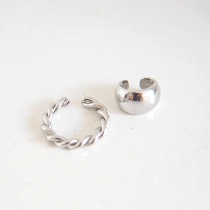 マルチな着けこなしを楽しめる! リングとしても使えるイヤカフとミニイヤカフのセット/ねじりR+甲丸ミニイヤカフSV*GD【Multi】※BOX付き シルバー