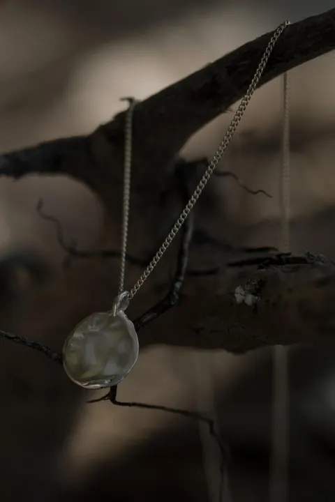 自然から生み出される形状とテクスチャーをイメージするペンダント付きネックレス。 お好きな面を表に向けて着用していただけます。 Natutal silver tone : 光沢を若干抑え、よりナチュラルなトーンで製作しました。 どんなスタイルにもマッチします。 Recycled silver 925 Size : 1.5×1.5cm / chain 42cm 【ご購入前にご確認ください】 ・Handcrafted 商品の為、一つひとつ多少形が異なります。 ・Silver製品は細かな傷等がある場合がございますが、不良品ではございません。 ・シルバーの特性上、柔らかく傷つきやすい為、商品を取り扱う際は優しくお取り扱いください。