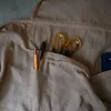 ヴィンテージワークウェアの雰囲気を随所に盛り込んだベーシックなエプロンは、どんなシーン、どんな人にも合う汎用性の高さが魅力。 パートナーとのシェアもおすすめ出来る1枚です。 「フリーサイズへのこだわり」 150cm~180cmまでさまざまな体型のシサムスタッフが着用し、辿り着いたフリーサイズは着る人を選びません。 自分用はもちろん、プレゼントにもお店のユニフォームとしても、フェアトレードを気軽に取り入れていただけます。 外仕事もしやすいよう、しゃがんだ時に床につかない丈にしました。 首紐の長さは3段階に調節可能。 自然素材のコロゾナッツボタンがポイントです。 腰周りの布はジャストでもゆるく結んでも。 体型や服に合わせた着こなしが楽しめます。 「まるでお仕事用のウエストポーチ」 腰部分に配したテーブルワイプホルダー。 セットで展開しているテーブルワイプはもちろん、お手持ちのタオルを通してお手拭きにも。 ゴミが溜まりにくいよう、角を落としたポケット。 さらに前ポケットの中には、スマホ用のポケット、ペンホルダーとはさみホルダーもご用意しました。 一見シンプルに見えて、お仕事用のウエストポーチをつけているような安心感。 モノがポケットの中で泳がないことは想像以上に快適です。 「ステップステッププロジェクト」 sisamのパートナーであるCreative Handicraftsの生産者の多くは、インドのスラム街で暮らす女性たち。 最初はエコバッグや巾着など、比較的簡単な縫製から技術を学んでいきます。 直線縫いからカーブ縫いへ、裏地無しから裏地付きへと少しずつ技術習得をしていくなかで、 小物と服の間に、もう一つステップを作ることができたら。 このエプロンの開発には、そんな大切な理由も込められているのです。 一歩一歩、着実に技術の階段を登ってもらいたいという思いを込めて、「ステップステッププロジェクト」と名付けました。 このエプロン企画は、25周年を迎える私たちsisamのものづくりの在り方を再考するきっかけとなりました。 生産者と私たちの新たなステップステップを、ぜひ一緒に体感してください。 「長く長く大切に使えるものを」 毎日使っていると擦り切れやすい生地端部分は、生地の裏打ちと太番手コットン糸のステッチでしっかり補強。 力がかかりやすい部分にはかんぬき留めを施しました。 私たちはものを長く長くご愛用いただけることもエシカルだと考えています。 作る過程も使う過程もエシカルに。 自分だけのヴィンテージに育っていくのも楽しみですね。 「土に還る素材」 オーガニックコットン生地、コットン糸、コロゾナッツボタンと、全てのパーツが天然素材。 お洗濯の際にマイクロプラスチックを排出しません。 洗濯回数が多いエプロン、そんなところにも配慮しました。 「日常に馴染む3色」 昔からの工場が立ち並ぶ東大阪市で、染色を担ってくれているのが福井プレスさんです。 インドのものづくりと日本のものづくりが重なったエプロン。 手から手へと時間をかけてじっくりと形になりました。 生地は、オーガニックコットンを100%使用しています。 私たちの肌の心地よさだけでなく、地球環境や作り手の暮らしを守る選択肢を。 コットンの栽培法のなかで、今は全体で1%ほどのオーガニック農法が世界に広がっていきますように。