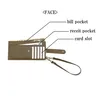 <薄くて軽くて嵩張らないコンパクトウォレット> お鞄の隙間にスッと入るから大きなお財布の様に鞄のスペースを埋めてしまうこともありません。 ここ最近は、”キャッシュレスと現金の併用使い”という方が増えている様です。 そんな中で求められる形、 ◼︎小さいバッグに入れても軽く嵩張らない ◼︎カード・お札・小銭が全て入る ◼︎出し入れがしやすくシンプルである そんな普段使いのお財布の理想を叶えてくれる形です。 薄くてコンパクトなサイズ感にも関わらず、お札は折らずに収納可能でカードや小銭まで入り、スッキリ収納する事ができます。 <製品の特徴> その① とにかく薄い!嵩張らないサイズ感 お財布は中身が入った状態が完成形です。 中身を入れても薄さをキープするから、小さなバッグに入れてもスペースを取りません。 その② とにかく軽い!バッグに入れても重くならない 柔らかくて軽いレザーを使っているから、たったの50gしかないんです。 これさえあれば、ほとんど使う機会の無い大きな重たいお財布も必要ありません。 その③ 1万円札が折らずに収納できるサイズ サイズを小さくする為にお札を折って収納するものも多いコンパクトウォレット。 その手間を無くして1万円札がちょうど折らずに入るサイズ感に設計しております。 さらに、ポケットの右端はあえてパカパカと開く様にして出し入れしやすくしております。 カードポケットの上にかぶせるタブは、お札を抑える役目も果たし、お札が落ちてしまう事もありません。 その④ レシートなどはお札と別ポケットに収納できる キャッシュレス決済をしても紙で出てくるのがレシート。 まとめてお札と別のポケットに入れておけばスッキリ収納する事ができます。 その⑤ あると便利な共革のハンドストラップ付き 鞄に入れる時に取手に引っ掛けておくととっても便利。 手首にも通るサイズ感で持ち運びにも便利です。 その⑥ 外面に出るカードの滑り落ち防止ベルト付き 出来るだけ薄く、使いやすい形にする為にカードポケットは外面に出る仕様となります。 その為カードが滑り落ちないか不安になってしまいます。 そんな不安を解消するべくスナップボタン留めのベルトが付いております。 その⑦ 高級感のある共革でのくるみボタン 真ん中に見えるスナップボタンは同じ革を使ったくるみボタン仕様です。 細かい部分にこだわるからこそ長く使える愛着の湧くアイテムになるのです。 その⑧ 豊富なカラーバリエーション お好きなカラーが見つかる様、全6色からなるカラーバリエーションをご用意しております。 日本のタンナーとイタリアのタンナーから仕入れた高級レザーを使用しております。 <仕様> ◼︎サイズ たて=8.5㎝ よこ=16.5㎝ 厚さ=3mm ◼︎重さ=50g ◼︎収納量 お札ポケット×1箇所(1万円札も折らずに収納可能) カードポケット×5箇所 レシートポケット×1箇所 小銭ポケット×1箇所(幅広マチ付き) ◼︎素材 牛革 ◼︎一般販売価格 14,000円(本体価格)/15,400円(税込価格) ◼︎原産国 日本 ◼︎レザーの種類 シュリンクレザー(トープ/ペールピンク/シルバー/アッシュグリーン) サフィアーノレザー(イエロー/ネイビー)