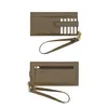 <薄くて軽くて嵩張らないコンパクトウォレット> お鞄の隙間にスッと入るから大きなお財布の様に鞄のスペースを埋めてしまうこともありません。 ここ最近は、”キャッシュレスと現金の併用使い”という方が増えている様です。 そんな中で求められる形、 ◼︎小さいバッグに入れても軽く嵩張らない ◼︎カード・お札・小銭が全て入る ◼︎出し入れがしやすくシンプルである そんな普段使いのお財布の理想を叶えてくれる形です。 薄くてコンパクトなサイズ感にも関わらず、お札は折らずに収納可能でカードや小銭まで入り、スッキリ収納する事ができます。 <製品の特徴> その① とにかく薄い!嵩張らないサイズ感 お財布は中身が入った状態が完成形です。 中身を入れても薄さをキープするから、小さなバッグに入れてもスペースを取りません。 その② とにかく軽い!バッグに入れても重くならない 柔らかくて軽いレザーを使っているから、たったの50gしかないんです。 これさえあれば、ほとんど使う機会の無い大きな重たいお財布も必要ありません。 その③ 1万円札が折らずに収納できるサイズ サイズを小さくする為にお札を折って収納するものも多いコンパクトウォレット。 その手間を無くして1万円札がちょうど折らずに入るサイズ感に設計しております。 さらに、ポケットの右端はあえてパカパカと開く様にして出し入れしやすくしております。 カードポケットの上にかぶせるタブは、お札を抑える役目も果たし、お札が落ちてしまう事もありません。 その④ レシートなどはお札と別ポケットに収納できる キャッシュレス決済をしても紙で出てくるのがレシート。 まとめてお札と別のポケットに入れておけばスッキリ収納する事ができます。 その⑤ あると便利な共革のハンドストラップ付き 鞄に入れる時に取手に引っ掛けておくととっても便利。 手首にも通るサイズ感で持ち運びにも便利です。 その⑥ 外面に出るカードの滑り落ち防止ベルト付き 出来るだけ薄く、使いやすい形にする為にカードポケットは外面に出る仕様となります。 その為カードが滑り落ちないか不安になってしまいます。 そんな不安を解消するべくスナップボタン留めのベルトが付いております。 その⑦ 高級感のある共革でのくるみボタン 真ん中に見えるスナップボタンは同じ革を使ったくるみボタン仕様です。 細かい部分にこだわるからこそ長く使える愛着の湧くアイテムになるのです。 その⑧ 豊富なカラーバリエーション お好きなカラーが見つかる様、全6色からなるカラーバリエーションをご用意しております。 日本のタンナーとイタリアのタンナーから仕入れた高級レザーを使用しております。 <仕様> ◼︎サイズ たて=8.5㎝ よこ=16.5㎝ 厚さ=3mm ◼︎重さ=50g ◼︎収納量 お札ポケット×1箇所(1万円札も折らずに収納可能) カードポケット×5箇所 レシートポケット×1箇所 小銭ポケット×1箇所(幅広マチ付き) ◼︎素材 牛革 ◼︎一般販売価格 14,000円(本体価格)/15,400円(税込価格) ◼︎原産国 日本 ◼︎レザーの種類 シュリンクレザー(トープ/ペールピンク/シルバー/アッシュグリーン) サフィアーノレザー(イエロー/ネイビー)