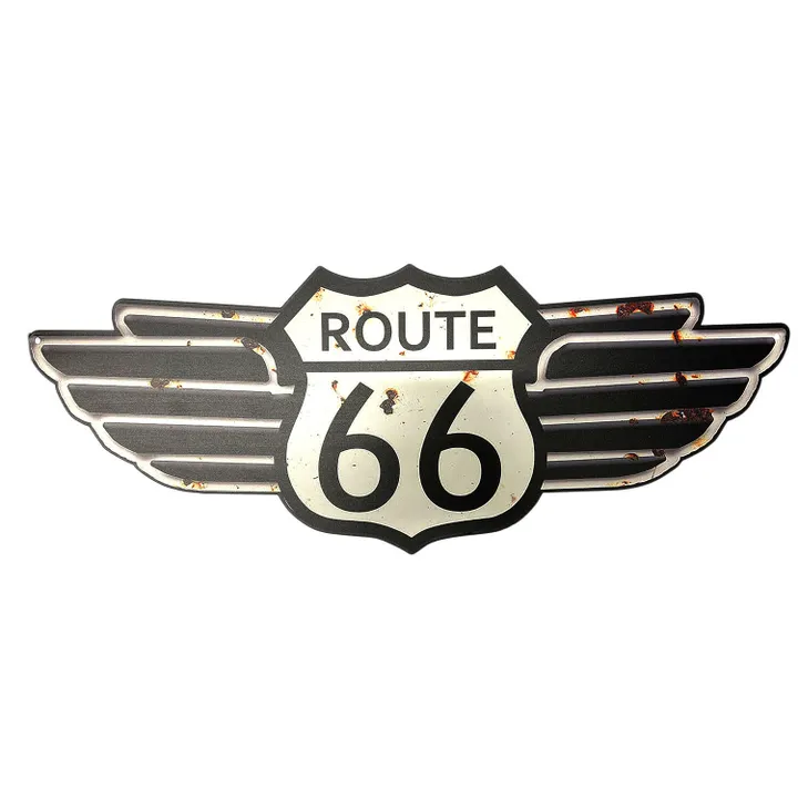 大型の人気のアメリカンデザインのビンテージ風サインボードです。 お部屋・ガレージ・お店・カフェ・店舗のイメージ作りやイメージアップ、ディスプレイ、お部屋のインテリア、壁飾り、催し物、など幅広く活躍します!また掛けやすいように穴が開いているので取り付けも簡単です。  スチールの看板はアメリカ各地で街頭広告、店内用看板として商用看板として用いられています。 アメリカンスタイルのデザインなのでお部屋やガレージをアメリカスタイルに装飾可能です。 DIY、エイジング塗装、アンティーク塗装、男前系 などのリメイク家具やリメイク雑貨とも相性抜群です。 錆びているように見えますが実際には錆びておりませんのでお部屋を汚すことなく飾っていただけます。