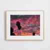 【現代アートポスター】ロサンゼルス LA 夕焼け空 ヤシの木 風景 写真 PHOTO A2(L) フレームセット:無垢 56.1×74.3cm
