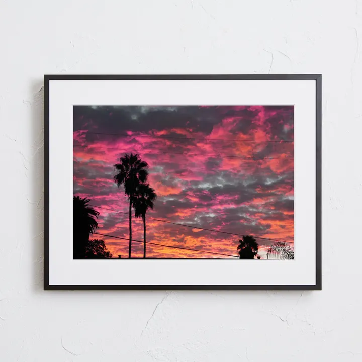 【現代アートポスター】ロサンゼルス LA 夕焼け空 ヤシの木 風景 写真 PHOTO A4(S) フレームセット:黒 29.4×38.4cm