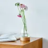 ウッドベースを使ったリューズガラスのフラワーベースです。 少ない本数でもバランスよく生けられるサイズとデザインにしています。 ガラス部分と土台のウッドは取り外せるので水替えなどのお手入れも簡単です。 美しい木目が特徴のオーク材を使用しておりインテリアと調和しやすいので、フレグランス ディフューザー リフィルを注ぎ、ディフューザーボトルとしても使っていただけます。