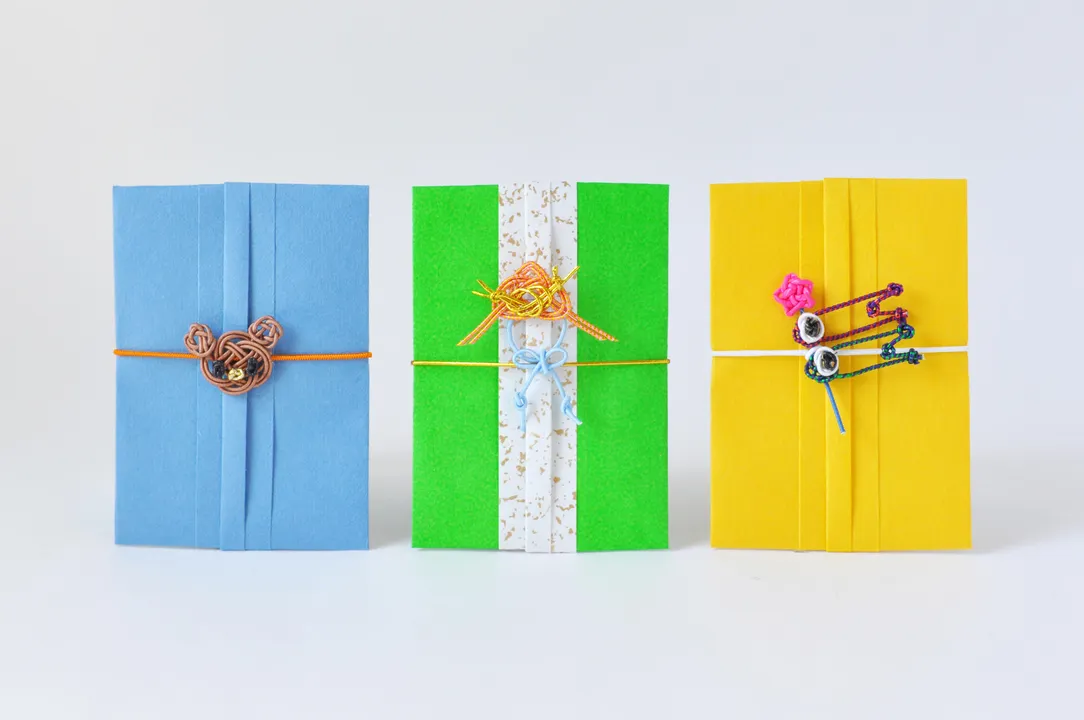 水引は和紙を撚って紐状にし水糊を付け固めたものに、着色やレーヨンの糸を巻いて装飾したり箔を巻いて華やかにした紐で、芯は紙なので自然分解が可能なサステナブル素材。