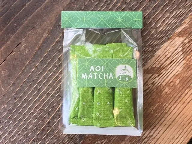 \茶道具がなくてもお手軽に抹茶体験/ 徳川家康公が駿府城で隠居時に愛飲したと言われる本山(ほんやま)抹茶。 煎茶が主流になっていったこともあり、家康公の死後、時代の波に姿を消した本山抹茶でしたが、400年の時を超えて、本山抹茶研究会が復活させました。 昼夜の寒暖差や山の穏やかな日照が育む抹茶は、まろやかな風味とどこか山のお茶を感じさせるほのかな渋み。 ラテやお菓子作り、アイスにかけたりと、様々なアレンジに使いやすい味わいです。 【セット内容】 ①AOI MATCHA スティック入り×12本 【原材料名】抹茶(日本) 【内容量】 2gスティック入り×12本 【賞味期限】約12ヶ月 【保存方法】直射日光、高温多湿を避け、保存してください。
