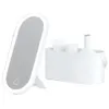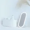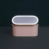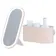 女優ミラーとメイクボックスがこの一つに 鏡のフチにLEDライトがついたスタンドタイプのメイク用ミラーと化粧ボックスがセットになったメイクボックス。LEDが縁に配置された女優ミラーで、タッチ式のスイッチを押せば明るさを調整できる優れもの!「女優ミラー」は「フタ」としての役割も担っていて、コンパクトなのも嬉しい! お気に入りの化粧品をひとまとめにボックスに入れておけば、簡単に持ち運びができるのでお家の中でも好きな場所があなたのお化粧台に早変わり。お家の中でのちょこっと移動の時はもちろん、旅行にまで持って行けちゃう充電式の女優ミラーボックスです。 【ひとまとめで移動も楽々】 お仕事でお化粧を直す方にも、道具をひとまとめにして職場に置いておけるのでおすすめ。収納時はスッキリとした見た目の機能性の高いデザイン。充電は専用のUSBケーブルでPCや車なんかでも手軽に充電ができます!本体のカラーもくすんだホワイトとピンクの2色でお好みに合わせて選択してみてください。 ミラーは縦でも横でも使えるように背面のスタンドが90°回転させることができます。ベストな使い方で楽しんでメイクをしてください。 細かい部分ではハンドル部分の可動部分はボックスの内部に突き出たりしていないので収納を邪魔しません。さらに内部の底にはフェルトシートでカタカタ音を防いでくれる気配りの仕上がり♪手触りのいい艶消し素材で使っていて愛着が湧いてきます! 【詳細】■セット内容:本体、充電ケーブル、説明書 ■素材:ABS、PMMA ■サイズ:約241×104×117mm ■重さ:約592g ■入力:DC5V/1A ■バッテリー:1500mAh