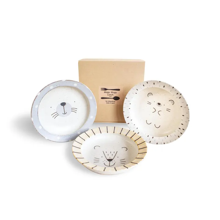 リムでこぼれにくいからすくいやすい 持ちやすい おうちごはんをたのしくMOGU MOGU! ライオンにハリネズミ、ゴマアザラシが集合 重ねてもそれぞれ使ってもかわいい それでは手を合わせて「いただきま〜す!」