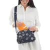 デニム地に花模様をプリントしたバッグ.花柄プリントのラメがきらきらと華やかな印象に!※素材の特性上、ラメが落ちやすくお洋服などに付着する場合がございます。予めご了承ください。開口タイプ/ファスナー式■ポケット/(内側)ファスナー×1、オープン×2(外側)後ファスナー×1