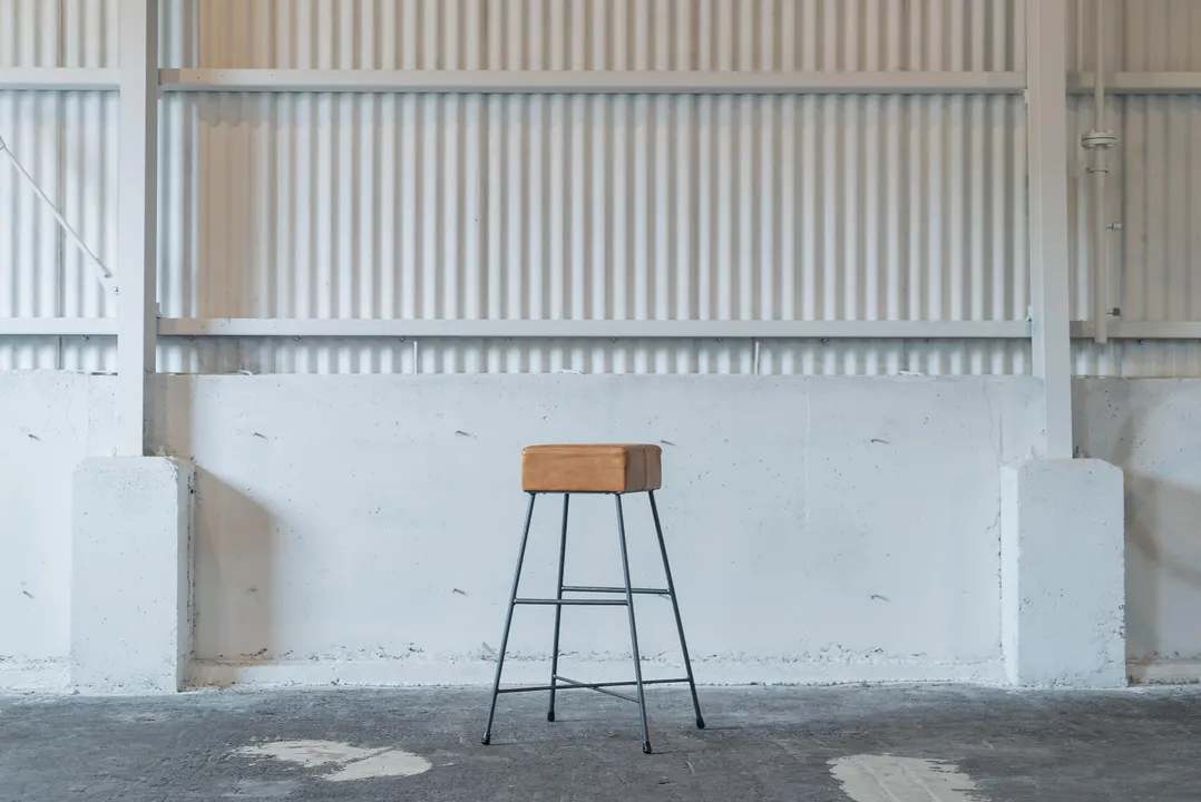 -LOAF STOOL- 焼き立てのパンをイメージした座面がポイントの通称 ”一斤スツール” 座面には本革を使用。鉄脚は線が細い割に重厚感を程よく感じられ、どのシーンにおいてもマッチします。高さは710mm。一般的な高さ1000mm前後のダイニングテーブルにも合います。 カラーはCAMEL・BROWN・DARK BROWNの三色からお選びください。 (画像にはLOW STOOLも掲載しておりますが、実際はHIGH STOOLのみになります。)