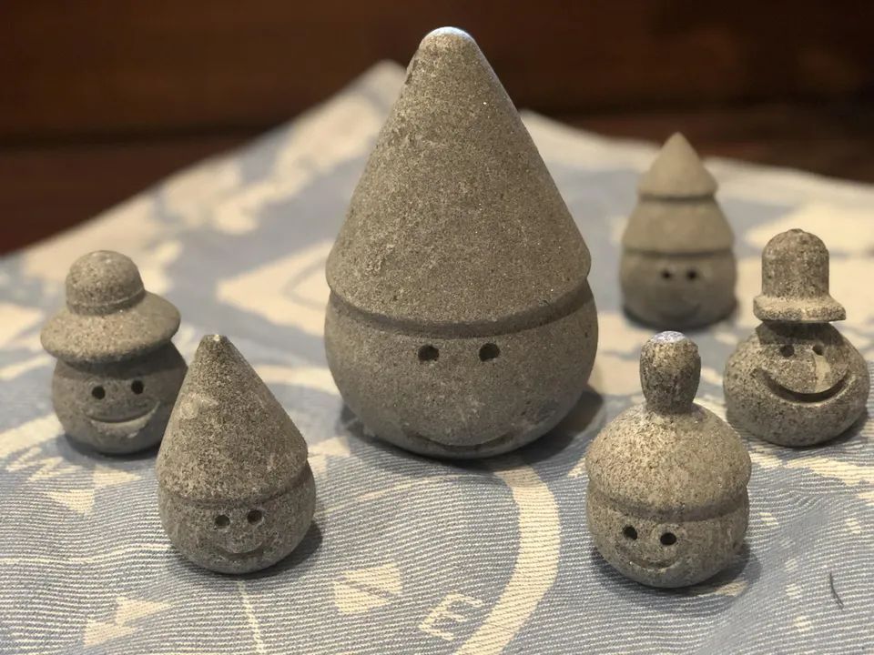 フィンランドでは昔から人間と妖精が共に住んでいるという言い伝えがあります。 帽子をかぶった妖精達が、人間が住む家や小屋に住み込み、人間達がいつも幸せに暮らせるよう、災難からも守ってくれているのです。 サウナストーブやサウナベンチに置いてフィンランドのサウナの雰囲気を演出。 28億年前にフィンランドの地で生み出された天然石ソープストーンならではの手触りと落ち着いた風合いで、かわいいフィンランド生まれの小人達がほほえんでいるだけでもリラックスした空間をもたらしてくれます。 部屋に置いてあるだけでもやわらかい自然素材の存在感が出て重宝するリラックスアイテム。 ギフトにも最適です。4人の小人を並べてあげるととても楽しい空気が生まれます。 ストーン 全長約13cm x 幅8.7cm ※天然石のため、サイズは一つ一つ異なる場合がございます。 1.38kg