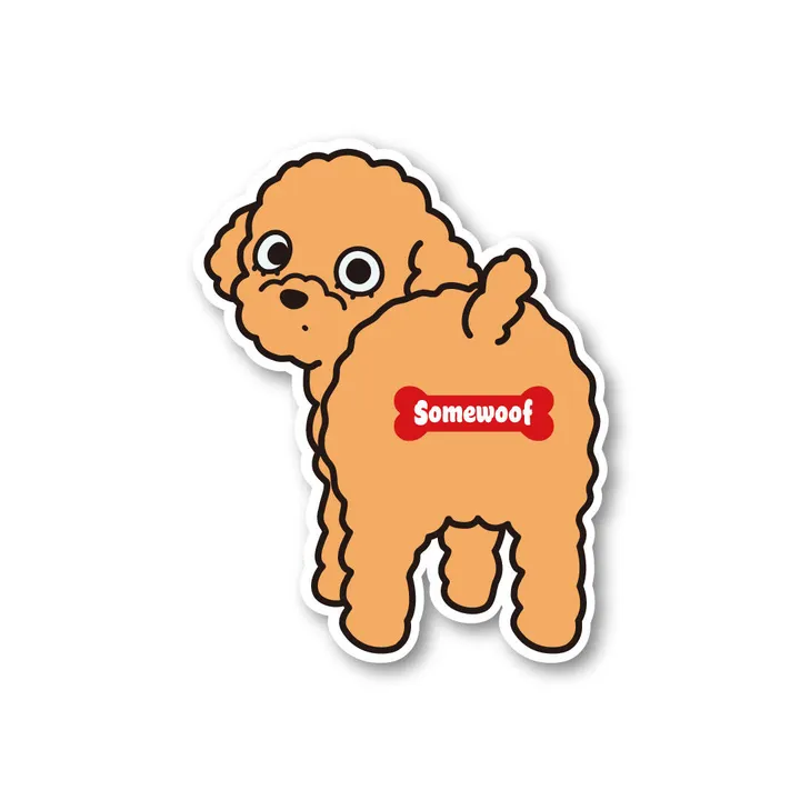 大人気のSomewoofオリジナルのトイプードルのステッカーの単品販売です。 人気イラストレーター hoppeさん描き下ろしの犬種イラストのお尻にSomewoofのロゴが入ったかわいらしいステッカーをオンラインでも発売します! サイズ:W53m×H67mm 仕様:屋内用 材質:ミラーコート