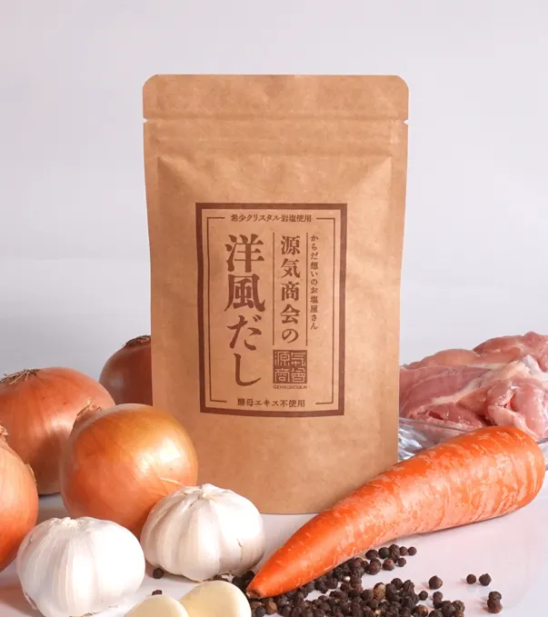 酵母エキス・発酵調味料不使用。野菜と鶏のだしにクリスタル岩塩をあわせた粉末のコンソメ。 アミノ酸を使った強い味ではなく、癖がなく柔らかい味わいが、料理に深味を加えます。 アレンジの自由度が高く、スープ、チャーハン、パスタ、など様々な料理に使えます。 基本のご使用目安(だし汁) 湯300ccに約6g(小さじ3杯弱)を溶かしてください。 お料理例 ●ピラフ ●ポトフ ●カレー・シチュー ●ロールキャベツ  ・お好みにより使用量を調節してください。 ・食塩による薄味がついていますので、料理のお好みにより塩加減をしてください。 ・だし汁としてご使用いただく他、炒め物などに直接振りかけて調味料としてもお使いいただけます。