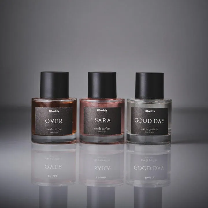 お得に購入できる Buddyの香水セットです。 バリエーションよりご希望のセットをお選びください。 セット内容 OVERとGOOD DAYとSARAの3つの香りを準備しました。 昨日の自分を超える香り OVER やりたいことはある。 だけど、あと一歩がどうしても踏み出せない。 そんな自分に、決着をつけたくて。 “やる”と決めた瞬間に、香りをひと吹きする。昨日の自分を超えるための香水。 今日をいい日にする香り GOODDAY 一歩踏み出すあなたへ。不安も戸惑いも怖さもあるかもしれない。だけど、そんなソワソワした気持ちに、自分で区切りをつける。「今日が、いい日になりますように。」GOOD DAYは、そんな願いを込める香りのおまじない。 まっさらな自分に戻る香り SARA いつの間にか何重にもなっていた「だから」それをひとつずつほどいて、まっさらになったらあなたはどんなことをしてどんな表情をうかべているでしょうか。その顔はきっと、今よりもっと素敵。「こうあるべき」を頑張ってきたあなたが「本音」と向き合えますように。