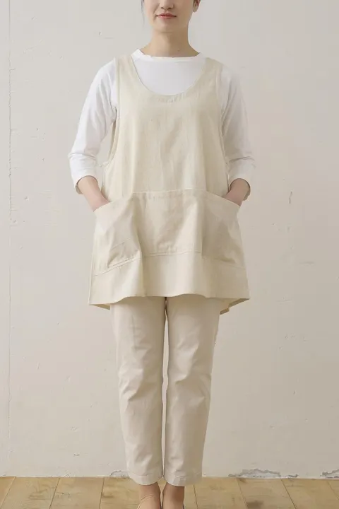 軽やかな綿麻生地で織ったアトリエヌイのオリジナルストライプ オーソドックスな首かけエプロン