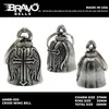 素材:ピューター合金(錫) 付属品:ポーチ 英語説明書  本物のアメリカBRAVO BELLS社製ガーディアンベルです。 MADE IN USA アメリカ製 交通安全 魔除け 御守り ガーディアンベル アメリカのライダーの間には、事故や、転倒の原因は「道路にひそむ悪魔」によるいたずらだという伝説があります。悪魔は走る者に悪戯やトラブルを運んできます。このベルは美しい音色で悪魔たちを追い払うと言われ愛されています。そんな悪魔のいたずらを防ぎ、御守りとなるのが、守護者のベルという意味を持つガーディアンベル。日本でも鈴の音(ね)は神道では魔除けの音と言われています。ピューター製の鈴でいい音色でガーディアンベルはデザインも様々あります。またガーディアンベルにまつわる伝説として、プレゼントとして送られたベルの効果は、自分で手に入れたものの2倍になると言われています。 それゆえに彼氏・彼女・友達・家族へのプレゼントとしての人気も非常に高まっています。シルバーアクセサリーのようにおしゃれに装着できて素敵な音色を奏でるガーディアンベル。バイカー以外にも自転車や旅・交通安全のお守りとしてお使いいただけます。カバン・ランドセル・キーホルダー・ペットの首輪等に付けてお使いください!!※タイラップ等でバイクのフレームにも簡単に取り付けできます。 アメリカンモデルだけではなく、旧車ファン、レプリカライダーまで、さらにバイクだけでなく、自転車や車にもピッタリな御守りとなっています。アクセサリーとしても人気で、アイディア次第で車体だけでなく、キーホルダーや鞄など、どこにでも付けておしゃれに楽しめます。