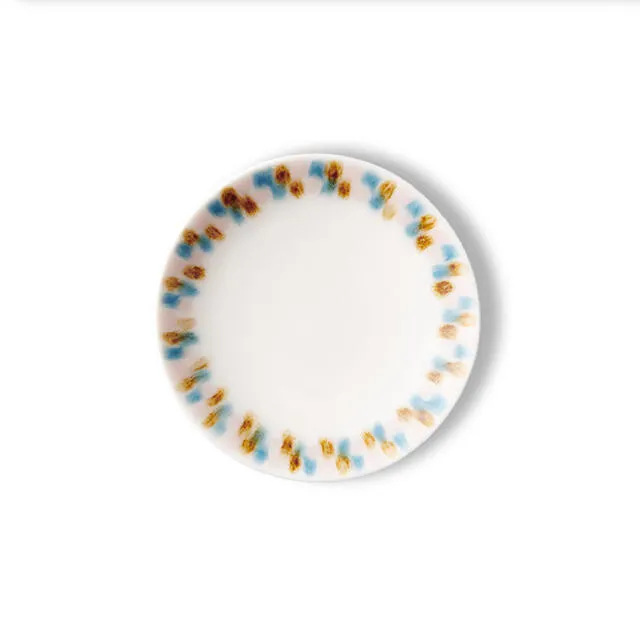 スタンダードな丸い豆皿にひと筆ずつ色をさし、滲んで流れる縁どりをした器です。 ほどよい深さで安心でき、料理を色彩豊かに縁どります。 霞(かすみ) 静かに明ける朝霞の中、目にうつる花や草木の色鮮やかな重なりを写しとるように… スタンダードな丸い豆皿にひと筆ずつ色をさし、滲んで流れる縁どりをした器です。 ほどよい深さで安心でき、料理を色彩豊かに縁どります。 カラフルな色合いの中に優しいニュアンスがあるのは、絵の具や印刷ではなく、釉薬を手しごとでさしているから。