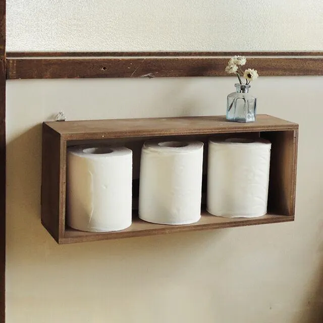 北海道 旭川市の自社工場で製作しています トイレットペーパーがちょうど3個並ぶサイズ。 どこにでも合うシンプルなデザインが◎。 軽くて画鋲でも掛けやすい。 付属の壁掛け用吊り金具付はドライバー1本で簡単に取り付ける事ができます。 ■商品サイズ 約 幅374×奥行105×高152mm   (板の厚みなどで、多少の誤差が出る場合があります) ■材質 桐材と合板を使用