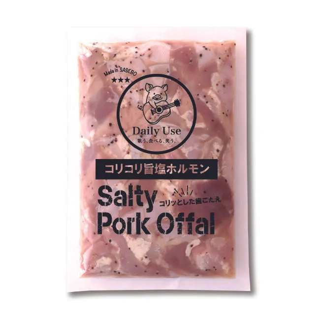 くせがなく食べやすい国産豚ガツを使用。コリコリ、シャキシャキとした食感が特徴。 豚ガツに合う塩味を追求し、海藻の旨みが凝縮された「藻塩」でまろやかに仕上げました。 さらに粗挽き黒こしょうを加えてアクセントをプラス! ごま油をなじませることで、味にムラが出ないように丁寧に味付けしました。 噛めば噛むほど旨みが広がり、箸が止まらないほどやみつきになる美味しさです。 たっぷり300g入りで2〜3人でシェアできる大容量! 夕食のおかずにも、お酒のお供にも大活躍。 おすすめの食べ方 ①炒めて野菜を加えれば栄養バランスの取れた一品に。 ②レモンをキュッと絞るだけで、さっぱりとしたビールのおつまみにもぴったり! 忙しい日の夕飯や、お酒のお供に、フライパンやホットプレートでサッと焼くだけで本格的な味が楽しめます。 Daily Useは、国際的な食品安全規格である「SQF認証」取得工場で製造しているので、安心・安全。 ぜひ、おうちで手軽に本格ホルモンの美味しさを味わってみてください!